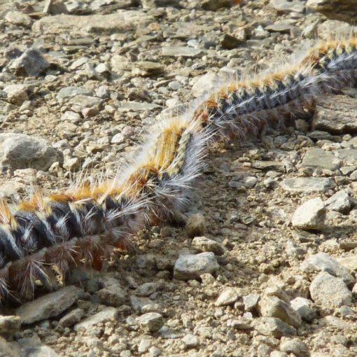Su color es oscuro, con unas marcas más pequeñas de un color más claro.